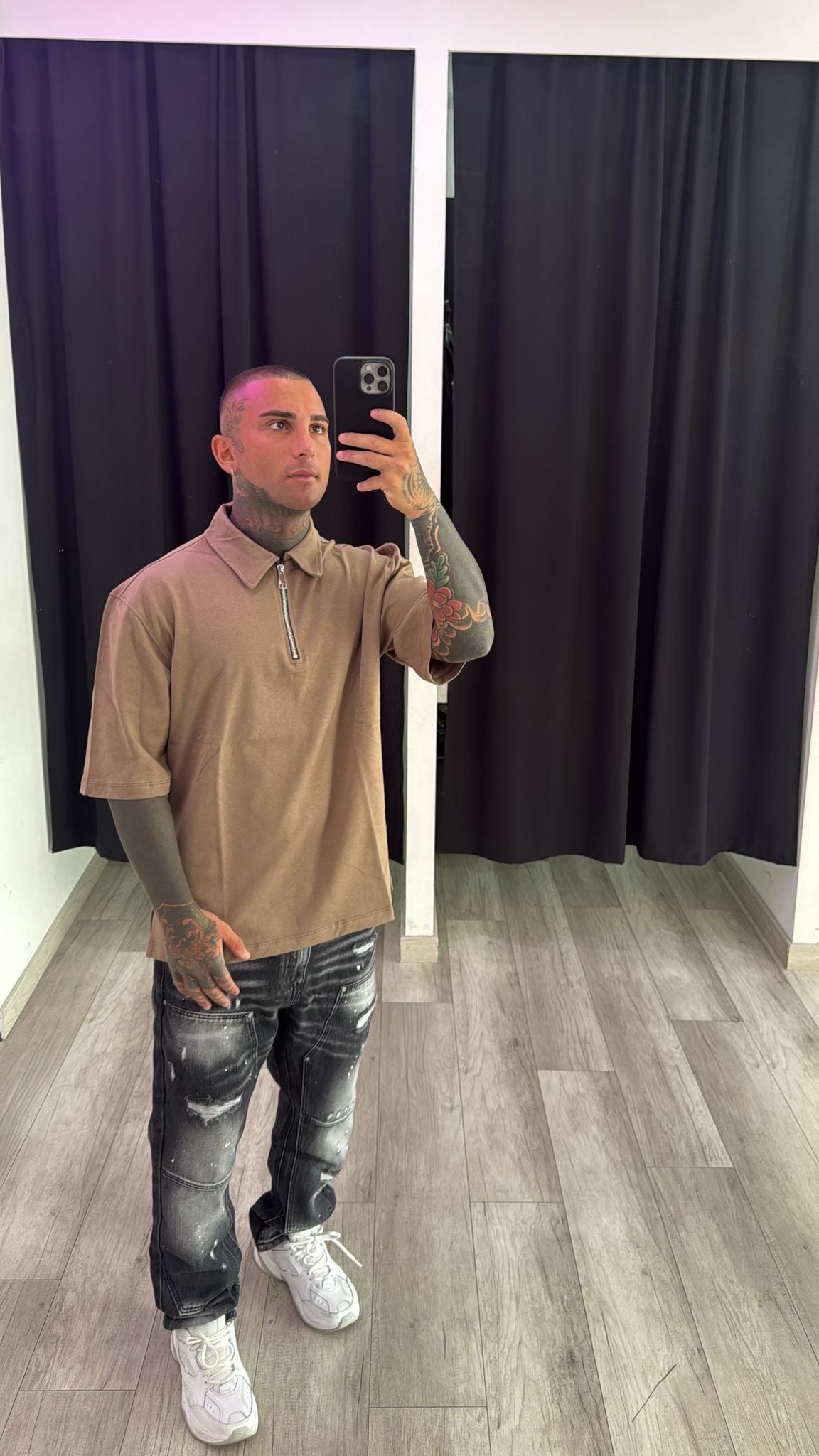 Polo zip marrone